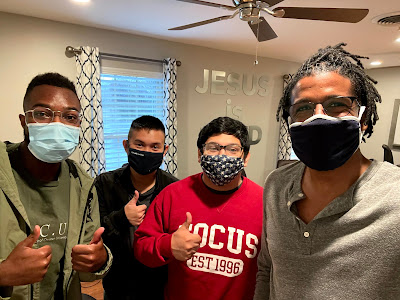 | From left to right: Dayo, Brian, Ricky, and me! This is our Wednesday, 2pm Men's core Bible study! It has been going well and I'm so grateful these dudes! |